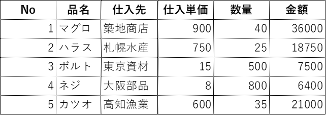 以下のようなサンプルデータを例に考えてみましょう。