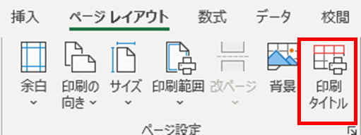 「ページレイアウト」タブの「印刷タイトル」ボタンをクリックします。