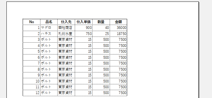 これにより2ページ目以降の各ページの先頭にも指定した行が自動的に印刷されるようになります。