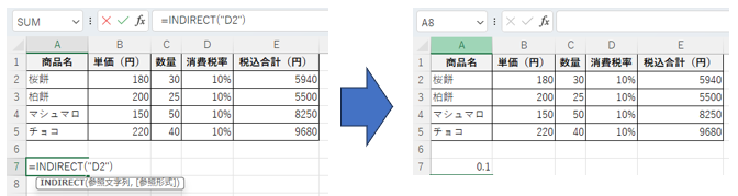 エクセルで数値を固定する方法4【INDIRECT関数でセル参照を固定する】