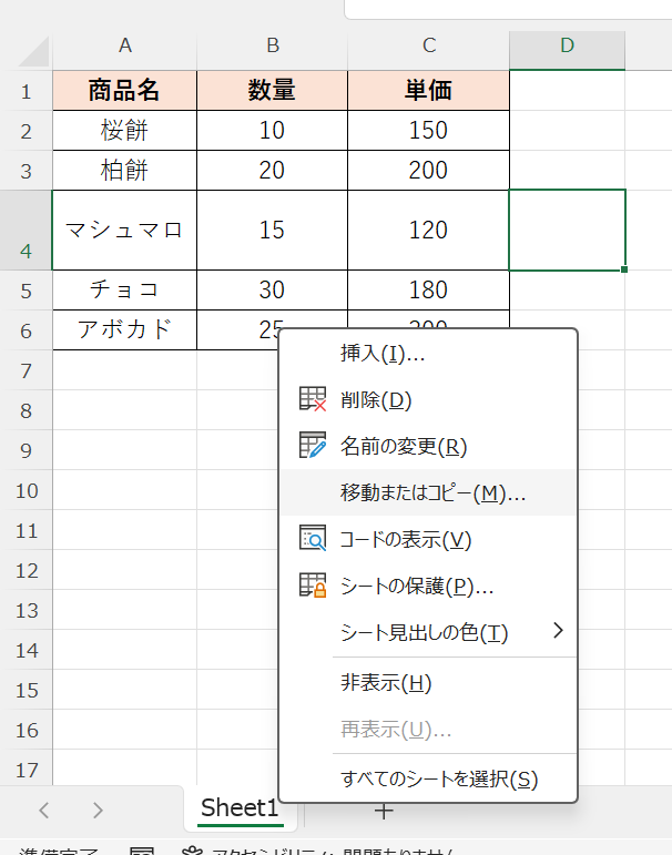 シート全体を丸ごとコピーして増やす最も確実な方法が、シートの右クリックメニューから「移動またはコピー」を使う方法です。