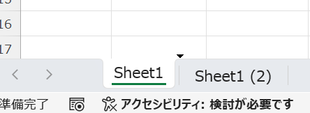 OKをクリックすると「Sheet1 (2)」のように元のシート名に連番が付いた複製シートが作成されます。