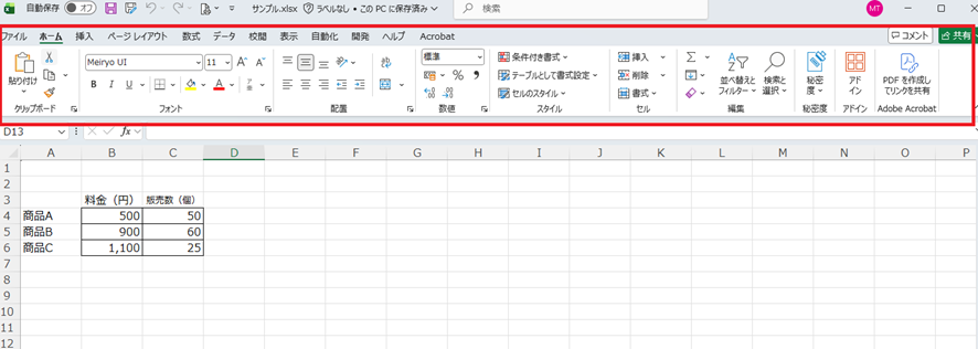 任意のタブをダブルクリックすることで、リボンの表示/非表示を切り替えられます。誤操作でリボンが消えた場合も、同じ操作で戻せることを覚えておきましょう。