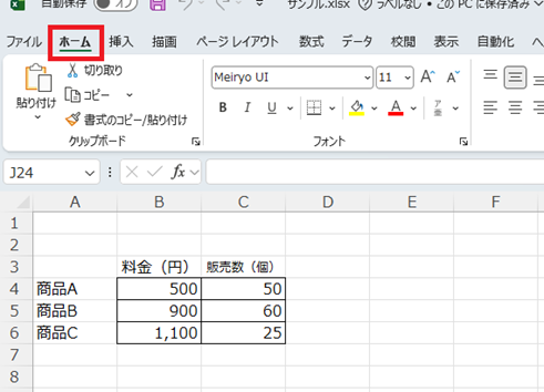 例えば「ホーム」タブをダブルクリックしてみましょう。