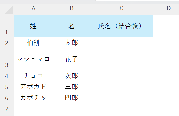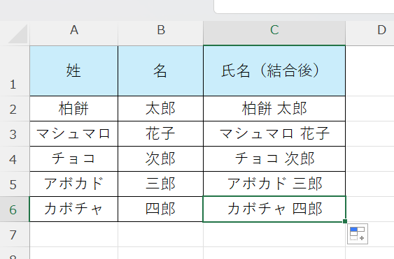 エクセルでスペースを入れる方法1【「&」演算子でスペースを挟んで結合する】
